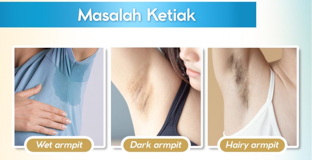 Ketiak BASAH bikin bau badan jadi menjijikan, udah gitu kulit ketiak GELAP pula, pakai deodorant biasa ketiak malah makin gelap, jadi iritasi dan menimbulkan noda dibaju. Belum lagi bulu ketiak yang mudah panjang jadi ribet harus rutin dicukur